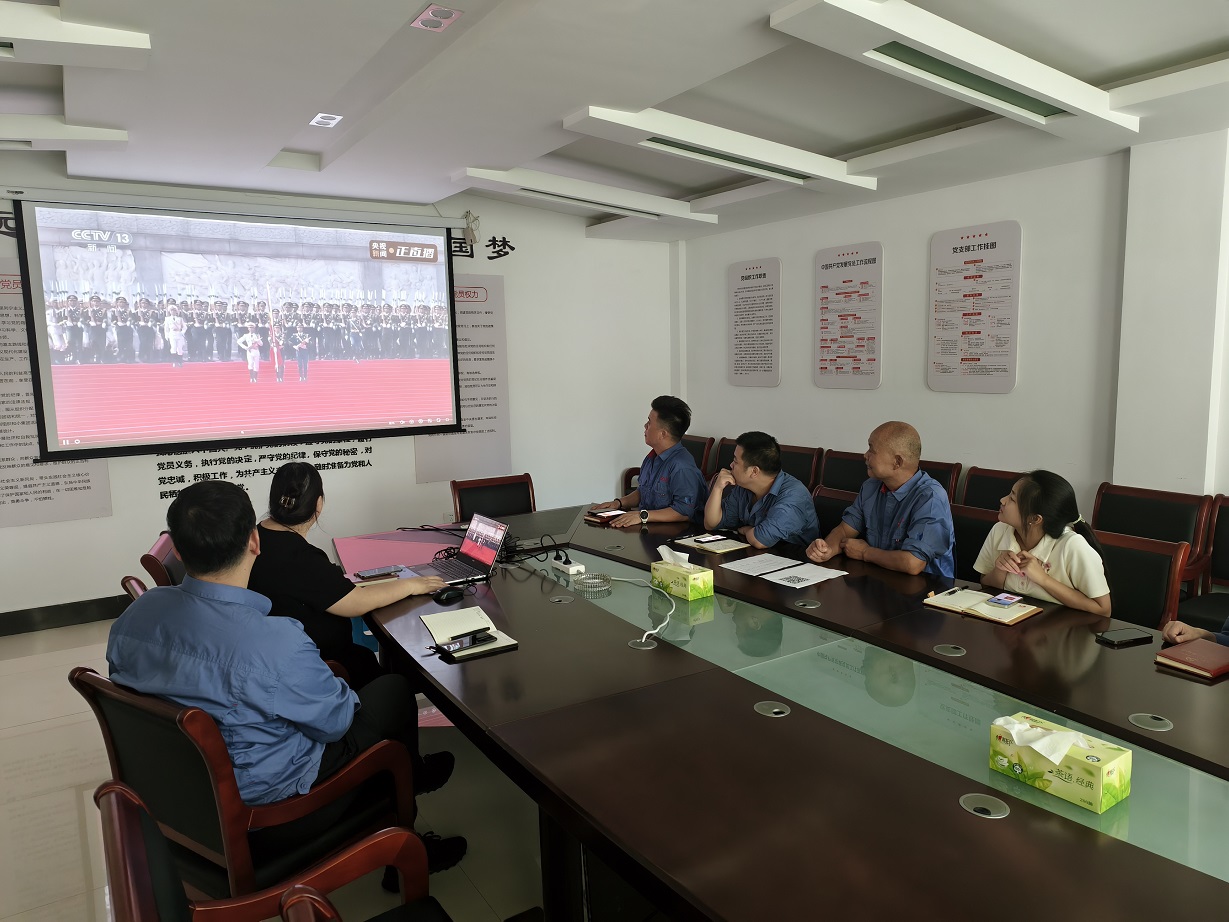 當(dāng)天上午,大家懷著激動的心情早早來到黨建會議室,等待閱兵儀式正式開始。9時整,閱兵儀式正式拉開帷幕,全體黨員干部共同見證這一神圣時刻。整齊劃一的徒步方隊、威武雄壯的裝備方隊、英姿颯爽的空中梯隊依次通過天安門廣場,接受黨和人民的檢閱。這場精彩的閱兵盛況直擊人心,中國彰顯出的強大國威與日益雄厚的國力,讓在場每一個人都感受至深、備受鼓舞。