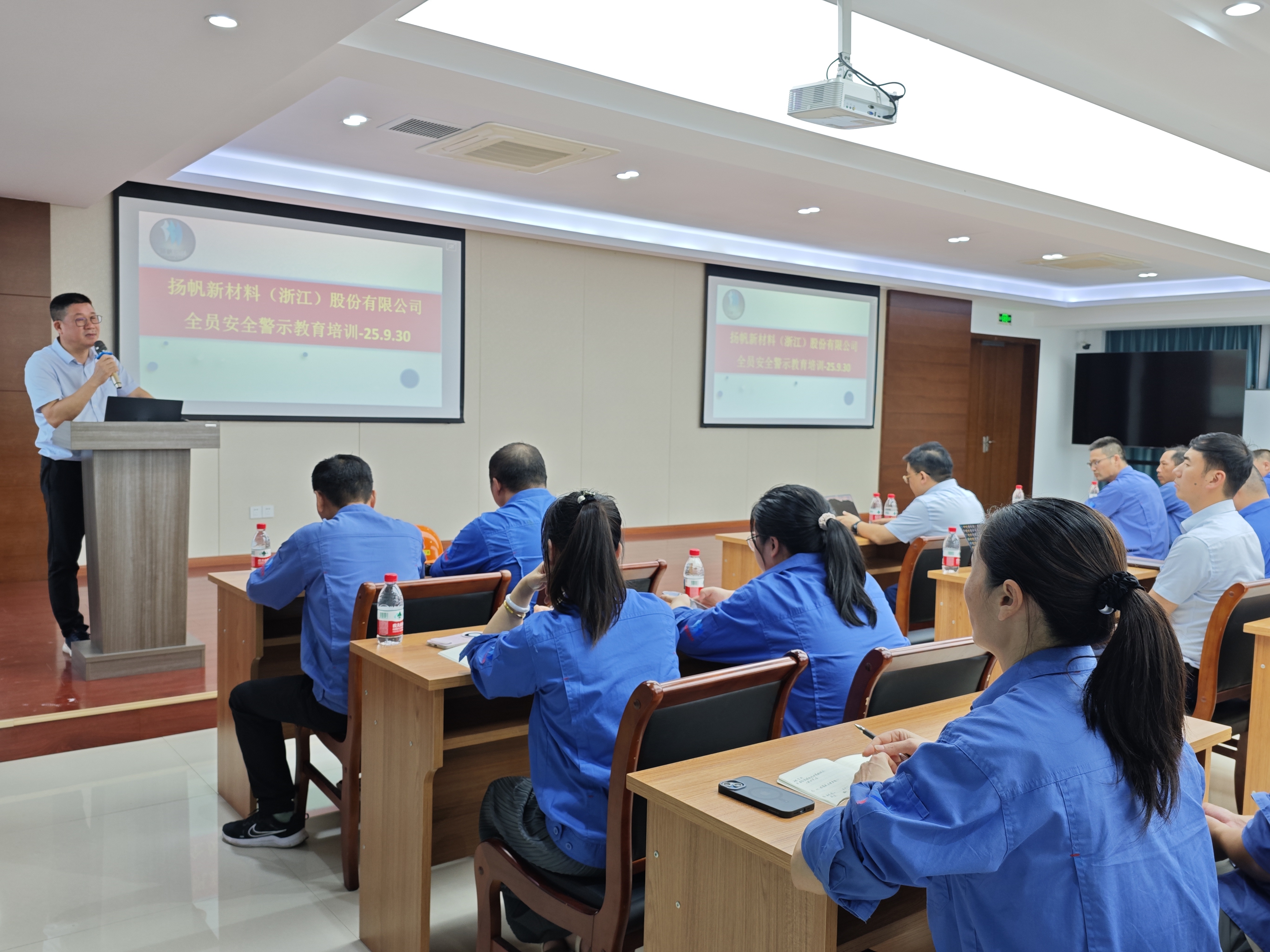9月30日下午,揚(yáng)帆新材料(浙江)股份有限公司在研究院三樓會(huì)議室組織開展了全員安全警示教育培訓(xùn)活動(dòng)。此次培訓(xùn)由環(huán)安總監(jiān)舒國(guó)棟主持,董事長(zhǎng)樊彬、總裁陶明出席并作出重要指示,公司全體員工參加培訓(xùn)。